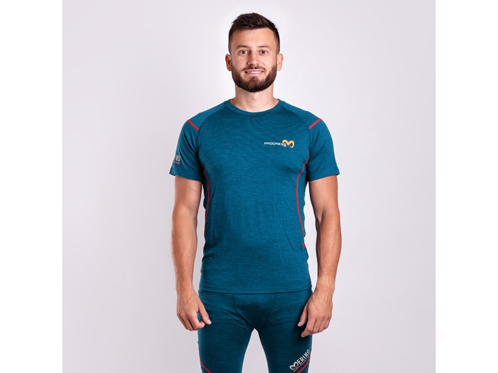 MW NKR pánské merino triko s krátkým rukávem petrol melír | PRG00633_petrol melír