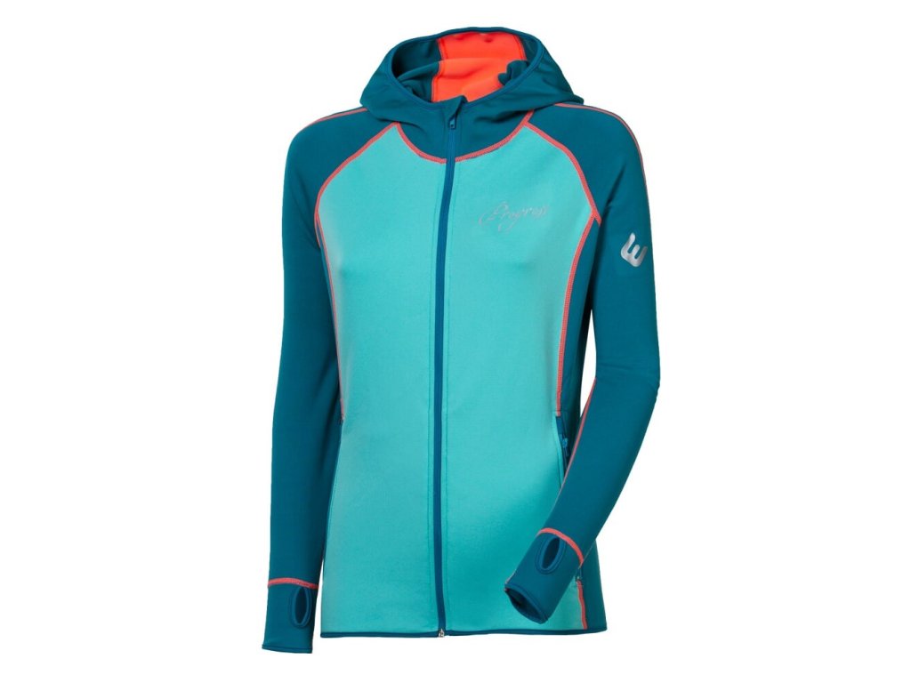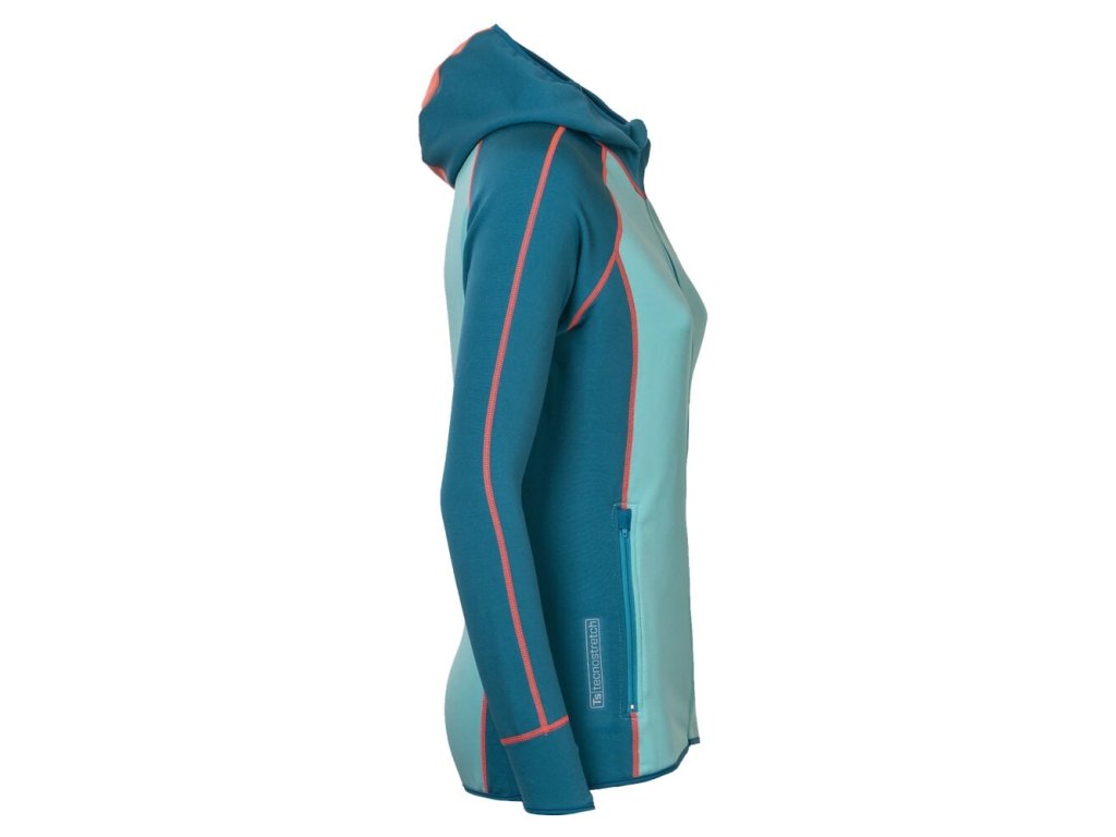 TISPA HOODY dámská funkční sportovní mikina s kapucí modrozelená/mintová