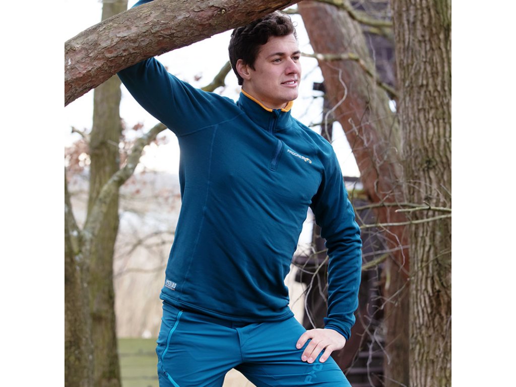 TOREZ MERINO ZIP pánská funkční mikina s krátkým zipem petrol